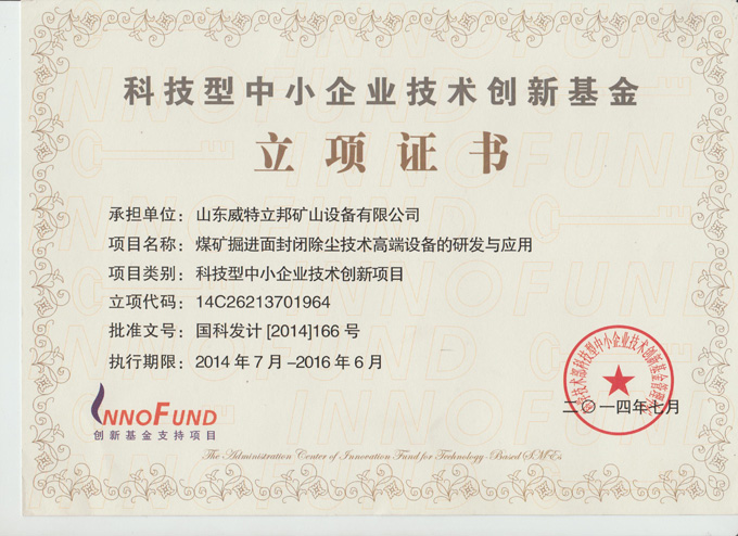 科技型中小企業(yè)技術(shù)創(chuàng)新基金立項證書